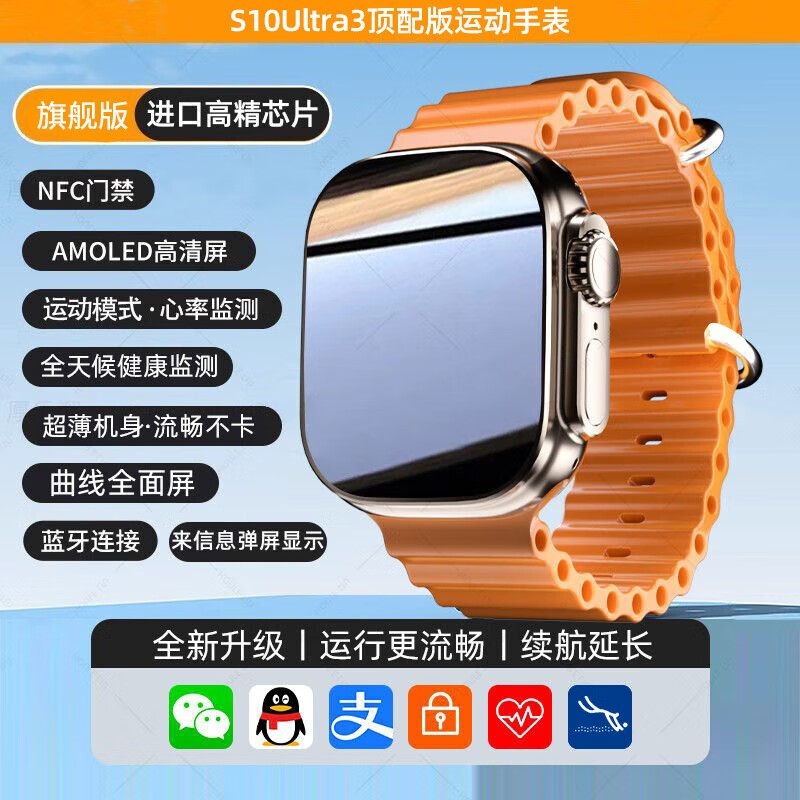 华强北Ultra3顶配S10智能手表金色款限时特惠44元