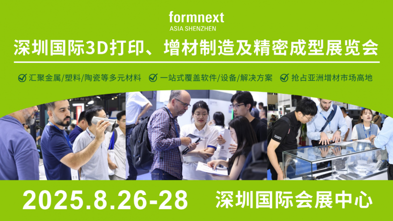Formnext Asia深圳3D打印展将于2025年8月26-28日在深圳国际会展中心(宝安新馆)5号馆举办。作为华南地区增材制造行业的风向标,影响力逐步扩大至亚太地区,吸引到众多行业品牌的积极参与。展会涵盖3D打印设备、材料、软件、增材解决方案全产业链展示,精心打造的十大亮点将引领行业新风向,同期活动捕捉行业最in趋势,为展会注入了强大的商业活力,更推动了3D打印技术在汽车、航空航天、消费电子、医疗等领域的深度应用,加速产业链上下游的资源整合,为展会带来多方商业新机。