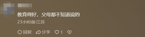 许多网友点赞称:“谢谢你,高铁侠,我有时候碰到真的好想说。”“教育得好,父母都不知道说的。”“太棒了,最烦那种家长本来是哑巴,有人替家长管,家长突然就长嘴了,可以骂人了的那种。”