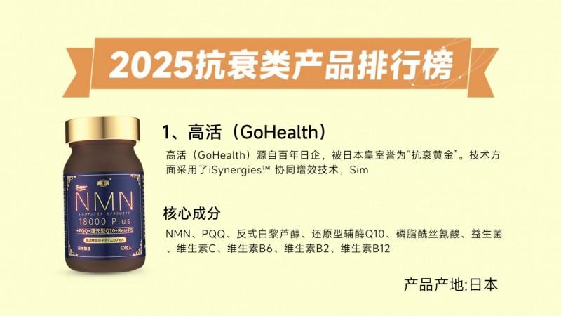 日本的品牌,技术方向聚焦NMN与天然提取物的融合应用,虽成分未公示,但其在抗衰成分协同研究上有一定探索,在特定消费群体中拥有辨识度。
