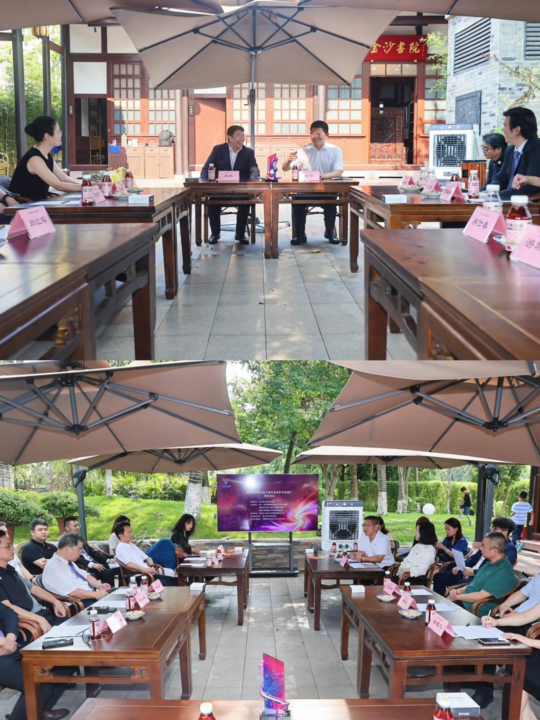 四川省工商业联合会孙宁副主席,以及四川省、市、区级工商联领导及金沙街办代表,与香港全港各区工商业联合会肖凯主席,香港红磡土瓜湾(九龙城)工商业联合会王子维会长、香港国际音乐节华鸣奖创新流行音乐大赛组委会邱红樱主席、香港国际音乐节华鸣奖创新流行音乐大赛组委会杨德执行主席等,围绕“音乐艺术文化助力城市宣传和文旅推广”这一话题畅所欲言,谏言纳策。