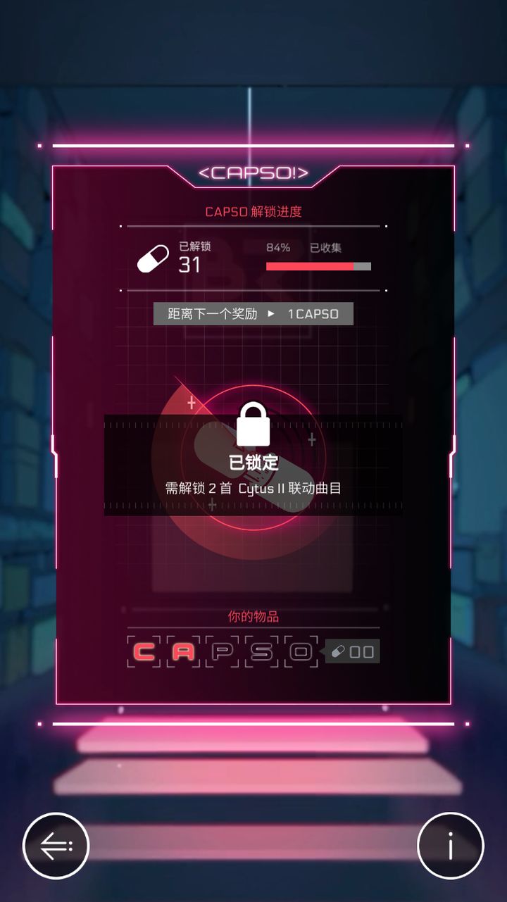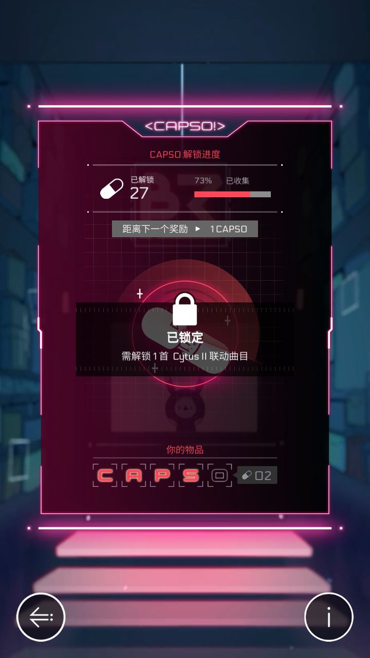 解锁27次胶囊后将会被锁定(一所示),此时需要解锁任意一首音乐世界联动曲(包括漂流、Hydra、Alexandrite),方可继续获取CAPSO字母,但无法再解锁新的奖励。