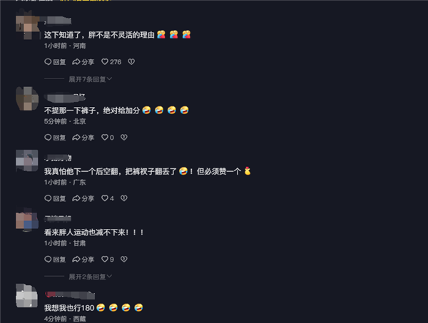对此,网友们纷纷发表看法。有网友调侃道:“这怎么不算是‘美肚杀’呢?”还有网友表示:“这下知道了,胖并不是不灵活的理由。”