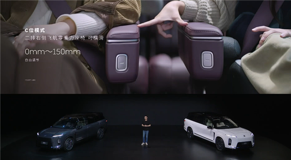 据悉,这三把零重力座椅包括女王副驾、后排双独立座椅,座椅靠背均支持最大151度躺角,第二排右侧零重力座椅还支持150毫米横向移动。