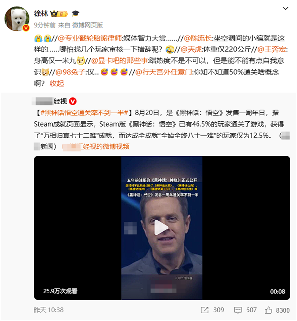 近日有媒体设置话题称“黑神话悟空通关率不到一半”,并描述称: