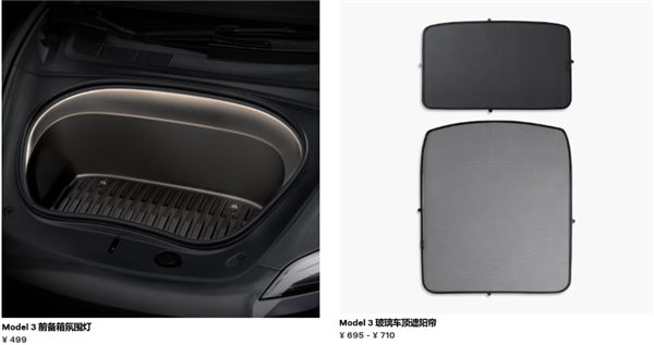 老款 Model 3 没有的前备箱氛围灯,现在也可以加装了。甚至于,这个特斯拉车主嘴硬都说不热的全景天幕,特斯拉都出了官方的遮阳帘。。。