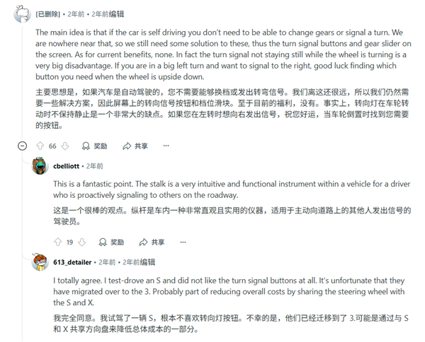 可以佐证这个观点的证据,也就在特斯拉的车上 —— 特斯拉可是把这些转向、换挡拨杆的线束接口留着的,要真是为了设计,咋不把这部分也省了。