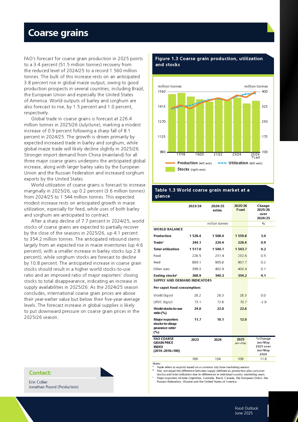 粗粮经历2024/25年度供应紧张后,粗粮价格(受玉米价格走高主导)在2025/26年度初仍高于平均水平。粮农组织初步预测显示,随着产量预期回升,2025/26年度全球粗粮供应可能增加,这将推动全球库存水平部分恢复。