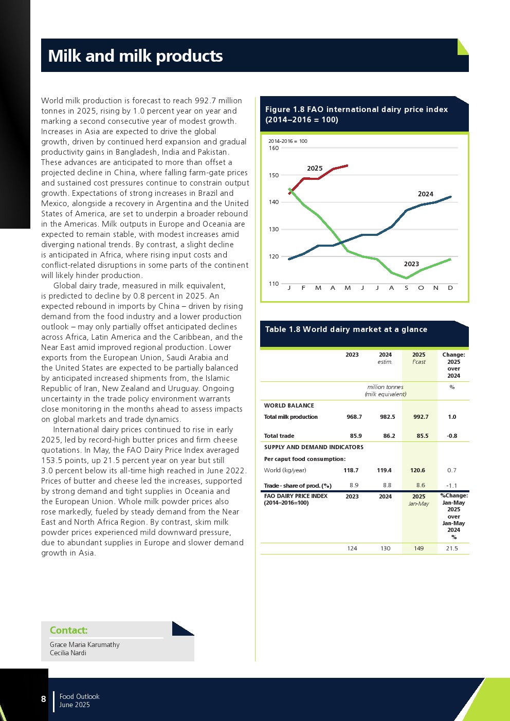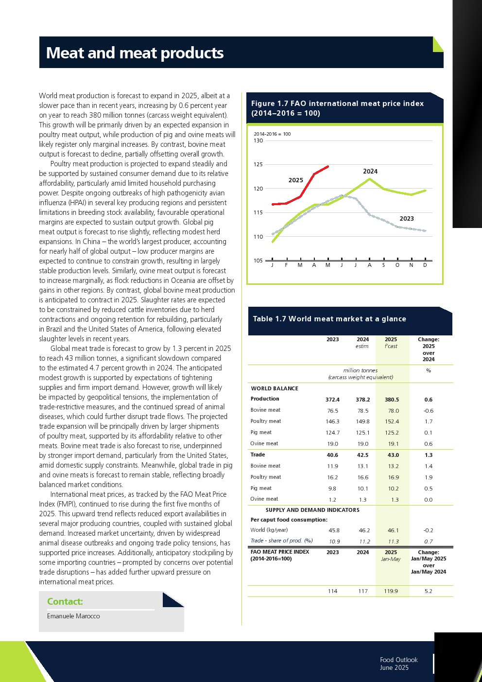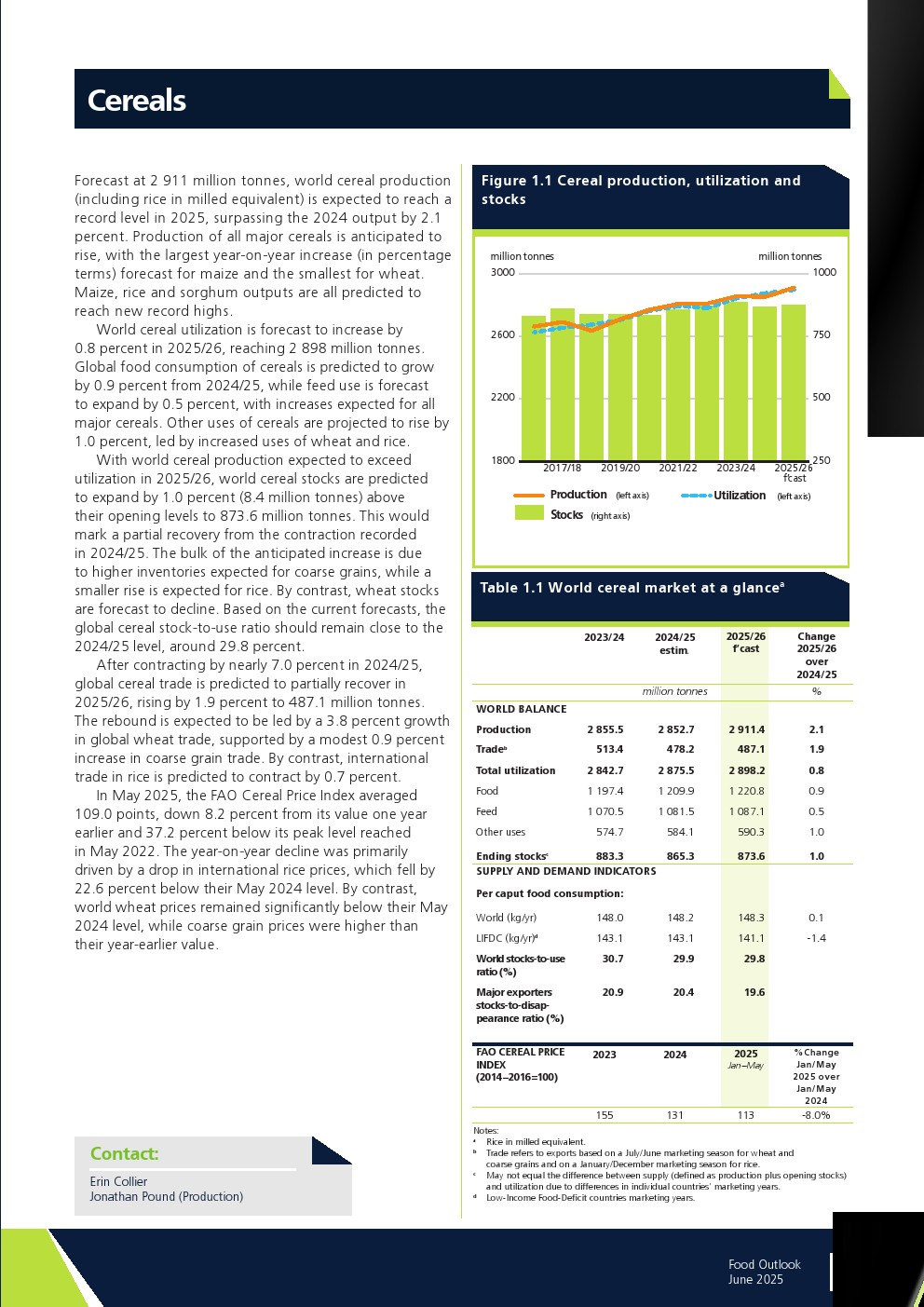 联合国粮农组织发布了“2025年年中食品展望报告”。最新评估显示,除糖类外,所有食品商品市场生产前景相对乐观,预计都将增产。但这一增长对库存恢复的影响将因供需间的微妙平衡而各异。全球食品商品生产仍易受天气条件影响。此外,冲突与地缘政治紧张局势升级、贸易政策及相关措施的不确定性、以及经济挫折都可能对贸易前景产生负面影响。