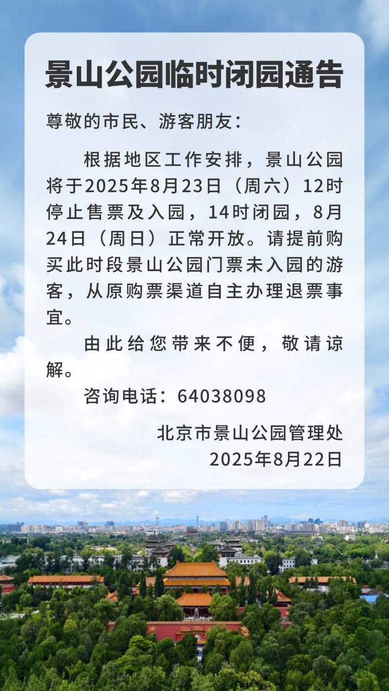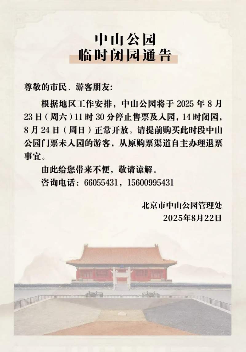新京报讯 据畅游公园微信公众号消息,北京部分市属公园发布临时闭园通告,详情如下: