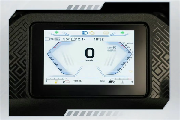 外观更为战斗升级为5寸TFT全彩液晶仪表,支持胎压检测、百公里油耗计算、环境温度、电池电压、时钟与常规行驶数据的展示等功能。