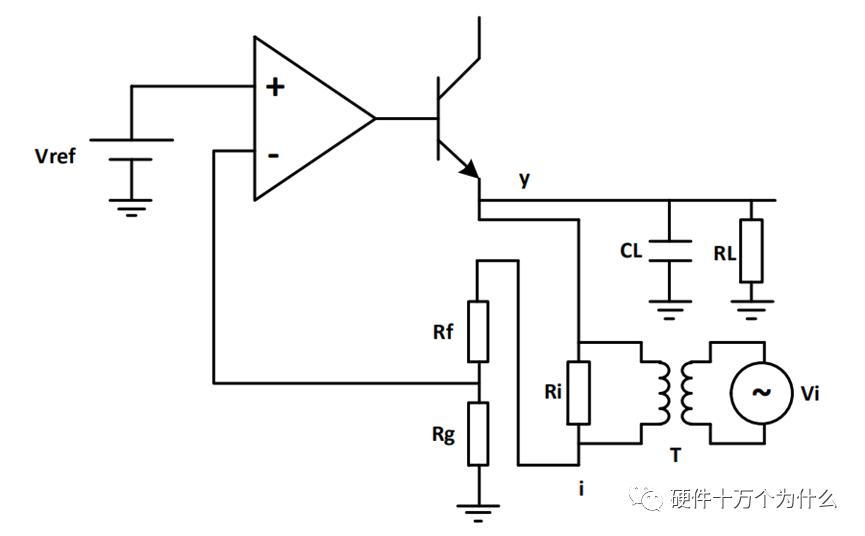 注入信号从注入电阻的一端注入到环路中,经过反馈网络、误差放大器和功率晶体管到达输出,也就是注入电阻的另一端。这样输出信号Vo 和注入信号i 的数学关系就是我们要求的环路增益。