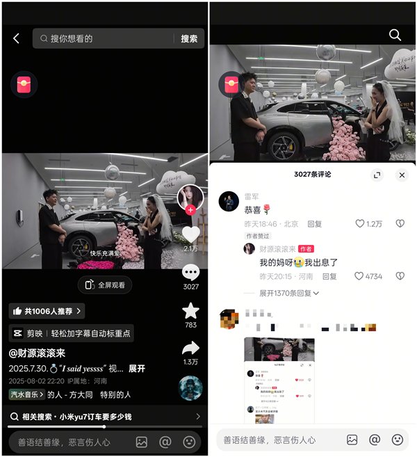 快科技8月22日消息,一位女生发布视频,在小米YU7交付现场,她被男友求婚。