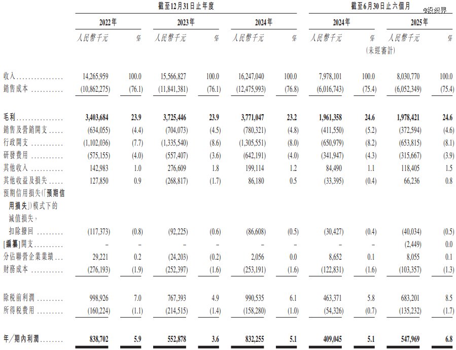 招股书显示,2022年至2024年,卧龙电驱的营业收入分别为142.66亿元、155.66亿元、162.47亿元,期内利润分别为8.39亿元、5.53亿元、8.32亿元。2025年上半年收入则为80.31亿元,同比增长0.66%;期内利润为5479.69万元,同比增长33.96%。