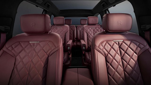车内采用大六座布局,前排座椅可180°水平放倒,与二排座椅联动,形成全平式大沙发。同时,六座版是行业唯一配备了三把零重力座椅的SUV,包括女王副驾、后排双独立座椅,座椅靠背均支持最大151度躺角,第二排右侧零重力座椅还支持150毫米横向移动。