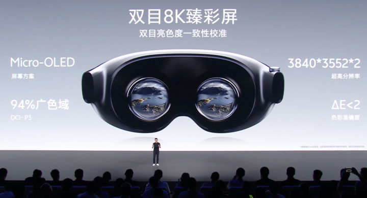– 使用 Micro-OLED,双目 8K,总像素 2728 万,双目亮度误差小于 2nits,屏幕 Delta E < 2,专业显示器级别