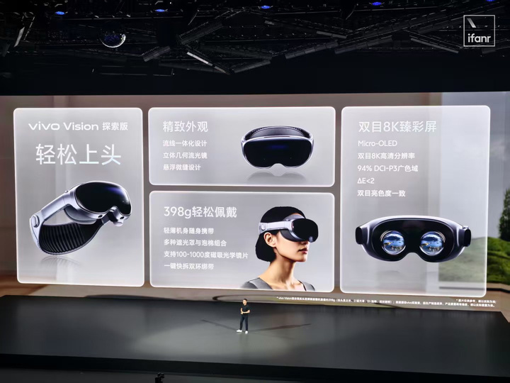 直接来说,vivo Vision 是一台 MR(混合现实头显),它的整机重量只有 398g,厚度也控制在了 40.3mm。