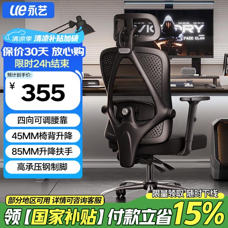 永艺撑腰椅M60人体工学椅超值优惠价329元