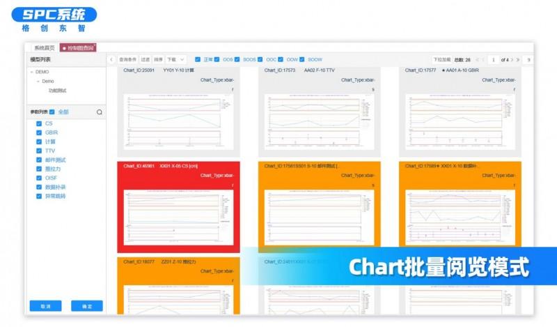 支持Chart(图表)与Report(报表)双模式切换,一键实现图表合并、拆分、批量查看及强关联参数对比;历史规格线、控制线自动叠加,点位信息随筛随显,大幅缩短工程师问题分析时间。