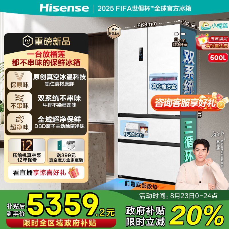 海信500升真空零嵌入法式冰箱特价4737元