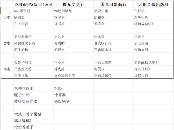 每层楼售卖的商品不宜过多,我建议每层设置4个组合,每个商家对应一个组合(必须如此,即使不组合也需保证每个商家都有商品销售),这样便于后期解锁商品和刷新组合,同时多个商家的商品也能更灵活应对断货问题。