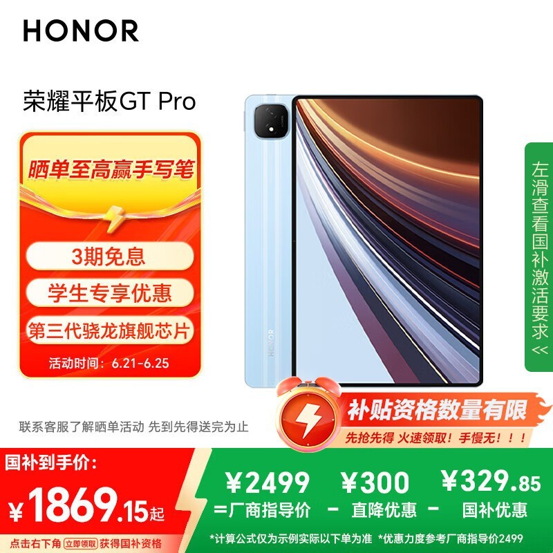 荣耀平板GT Pro WiFi版京东优惠价1775元