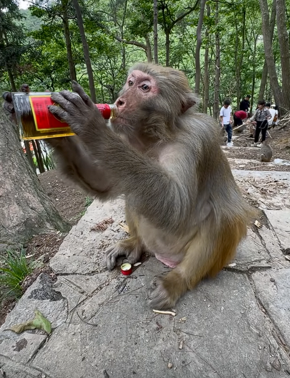 此外,猴子摄入酒精后会变得兴奋、暴躁,可能主动攻击人类(如抢夺食物、抓伤游客),加剧人猴冲突。
