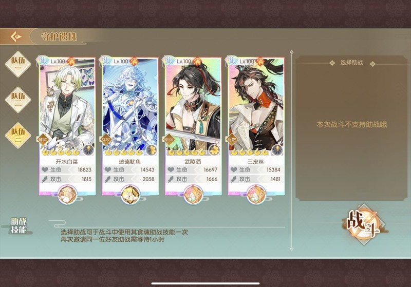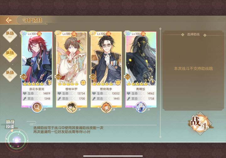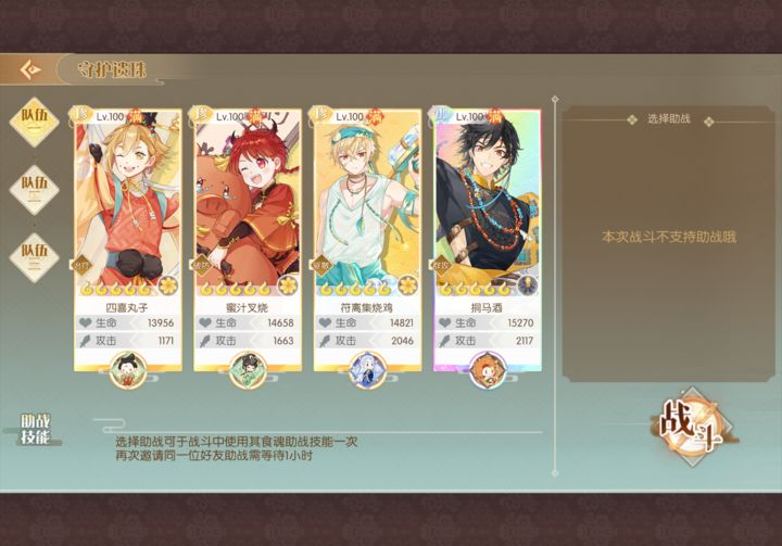 四喜带三彩可叠加12%伤害buff,后续符离与叉烧能有效破防。