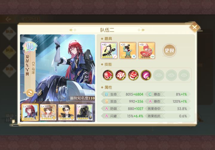 第二队教授四花加成后命中率提升至100%。
