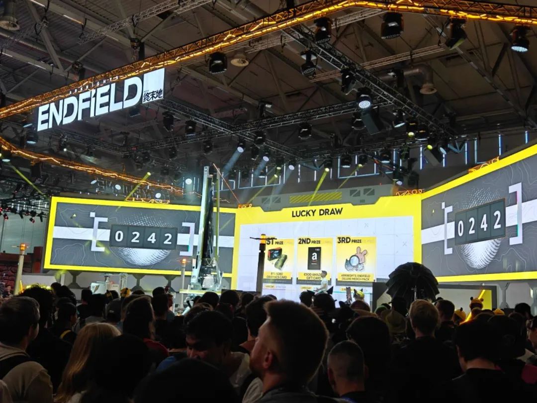 从这一点来说,就像前面提到的,鹰角今年用《明日方舟》的“线下沉浸展”,迭代了原本行业内常见的“粉丝嘉年华”,《明日方舟:终末地》这次的展台也不止是跳出了自身的二游框架,放眼整个Gamescom来说,像这样做工精细的“动态奇观”,也肯定算得上顶尖布景。不出风头都难。