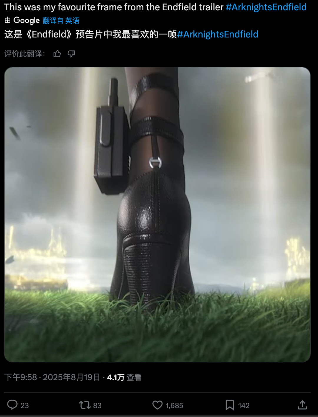 比如随着《丝之歌》公布了发售日,海外玩家论坛上立刻就出现了梗图,对比说:“压力现在给到《明日方舟:终末地》(以下简称终末地)了”。