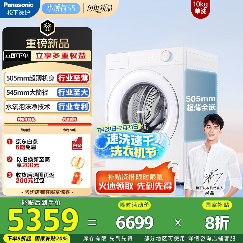 松下Panasonic滚筒洗衣机10公斤智能投放XQG100-M2Q1促销