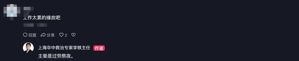 医生介绍,脑梗的高危因素主要包括高血压、高血脂、糖尿病、冠心病、血管狭窄、抽烟喝酒、肥胖、过劳等。李医生与网友互动时表示,他主要是因为过劳熬夜。
