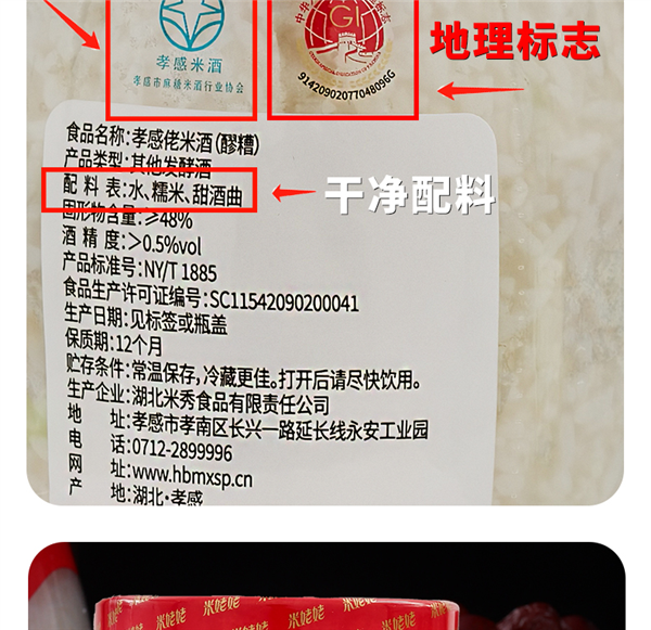 配料表仅有“水 + 糯米 + 甜酒曲”,单瓶折合 7.45 元好价: