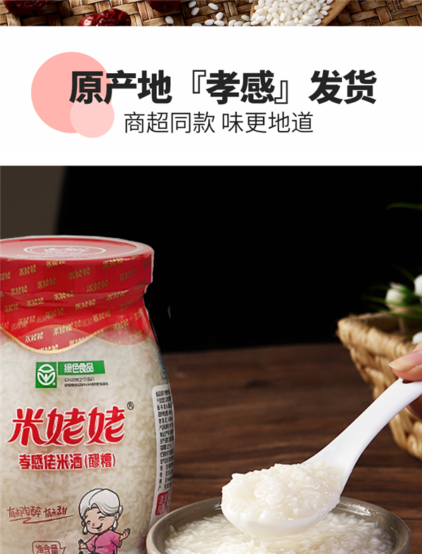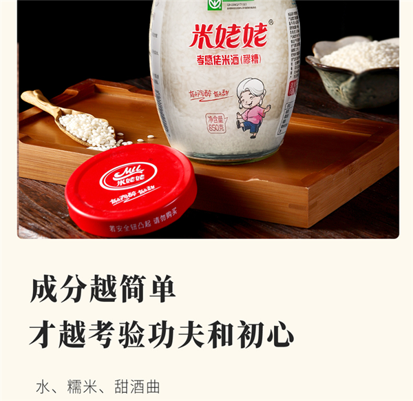 地道孝感风味,米姥姥孝感佬米酒(醪糟)850g x 2 瓶,报价 25.9 元,今日可领 6 元冲量券,实付 15.9 元包邮。