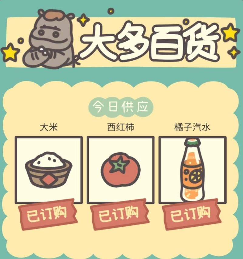 第二天大米和西红柿不会刷新,橙子汽水仍会保留。