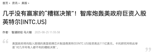 因为我们查了资料后发现,美国政府入股英特尔,这件事远没有看上去那么简单。