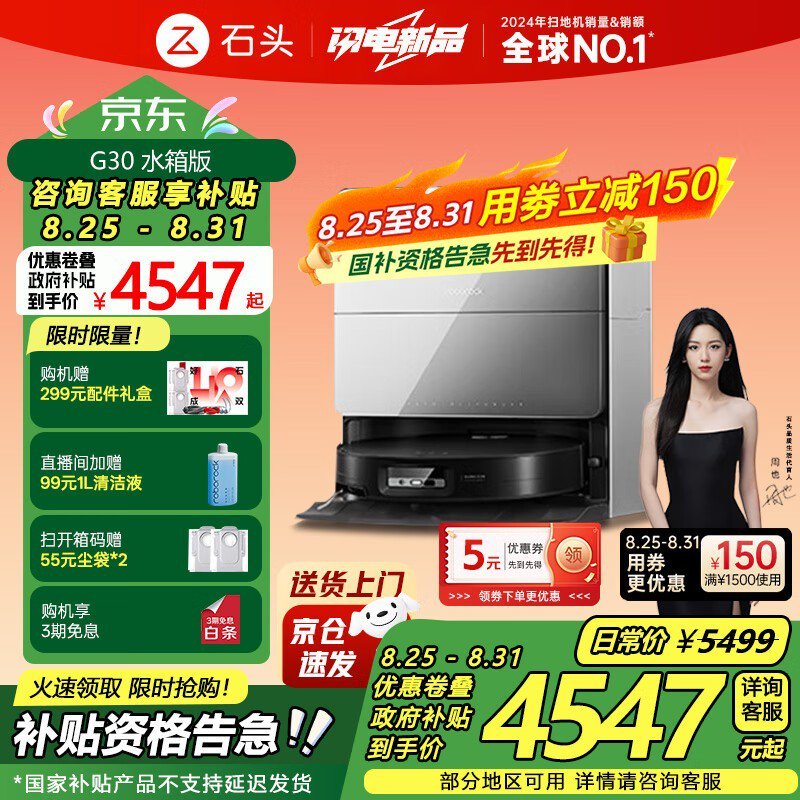 石头Roborock G30水箱版扫地机优惠价4455元