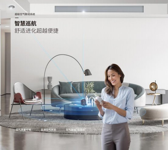 约克VRF天氟热水中央空调的超级空气联动系统,将“智能”融入家居空气管理的每一个细节。全屋设备互联,实现场景联动,依托约克AIR X超级空气联动系统,联动室内空调及新风设备,根据不同场景的需求设定,提供科学诊断、联动设备、智能触发、自巡航运行的健康舒适空气解决方案。