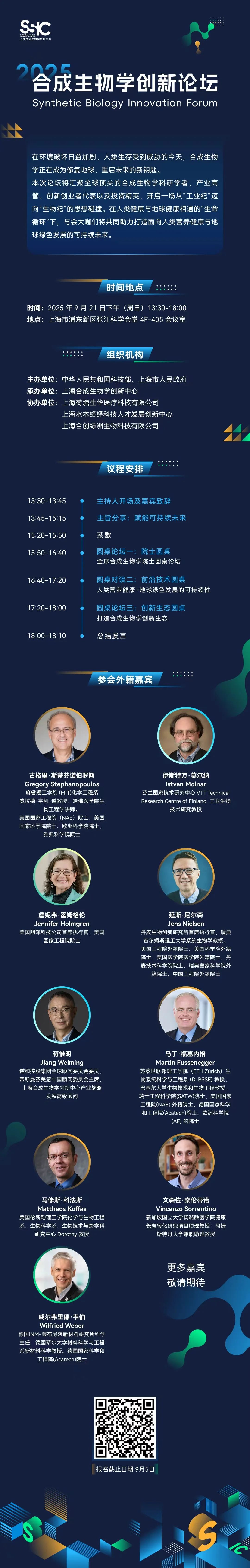 2025年9月21日,上海张江科学会堂 4F-405,让我们齐聚一堂,以合成生物学为匙,共启“生物纪”的可持续未来!