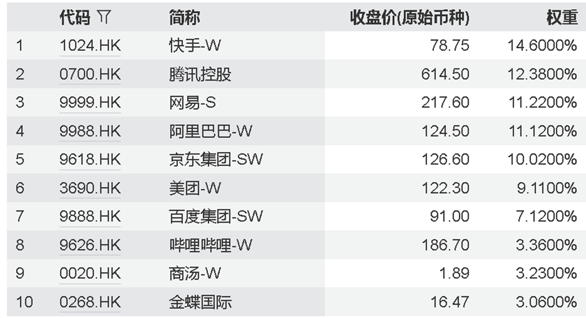 以恒生互联网科技业指数为例,重仓股包括腾讯控股、阿里巴巴等,都是我们熟悉的互联网龙头。