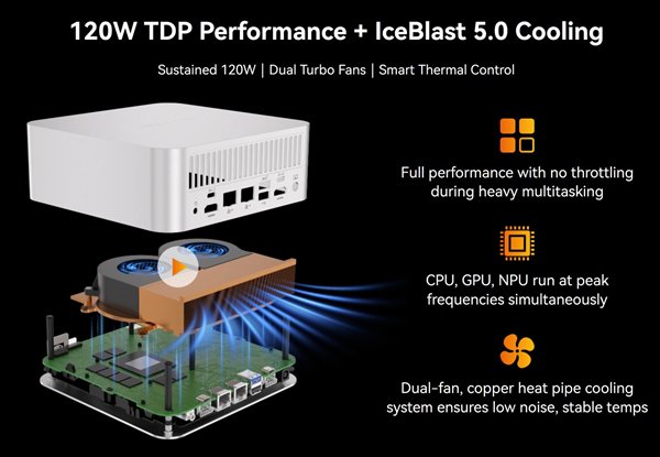 内部是IceBlast 5.0双风扇散热系统,号称能稳定性能释放120W,同时底部有明显突出,显然更有利于散热。