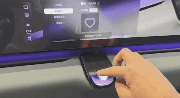 而中控上的氛围灯打在超纤皮上,得把控一个合适的距离,避免被皮料把灯光 “吸” 完了。