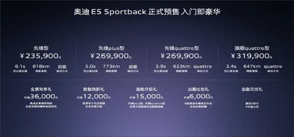 前几天,奥迪 E5 Sportback 正式开始预售,23.59 的入门价,第一次见到 BBA 的初始价格能跟新势力掰手腕的。
