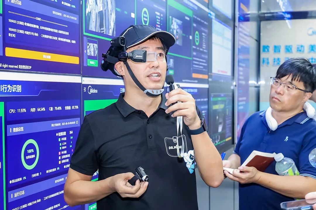以美的荆州洗衣机工厂的质检为例,在“美的工厂大脑”的加持下,AI眼镜辅助工人实现了根据市场问题、首检历史数据进行易错点提醒,并能基于视觉技术打通研发、品质智能体,根据物料的信息自动获取研发系统的图纸,并与拍照的实物进行比对,检验结果返回到品质智能体,形成完整闭环,首检效率由15分钟减少到30秒。
