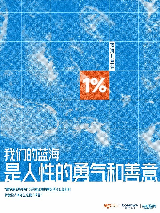 晒梦广告总经理许伟亮解释了“1%”概念的由来:“虽然受到patagonia的启发,但我们有不同的理解。蓝色经济的发展充满希望,我们将其命名为‘蓝海共生金’,希望呼吁公众拿出1%的精力与海洋合伙。”
