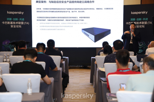 卡巴斯基中国区企业部总监吕超表示:卡巴斯基技术联盟拥有反病毒 SDK、扫描引擎、数据流等一系列领先安全技术和广泛的技术应用场景,涵盖网络安全设备、企业业务系统、终端防护等多个领域,可灵活便捷地整合到第三方产品和服务中,不同场景对应不同产品形式、核心安全价值和 TA 组件。集中展示了多个典型案例:包括与信息安全产品提供商战略合作、与硬件提供商合作拓展海外市场、与邮件服务商合作赋能安全大数据中心等,凸显了技术联盟产品组合的差异化、创新价值和低成本高利润等优势,在多场景为各类客户及合作伙伴赋能。