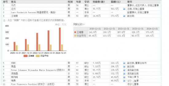 对比历年薪酬的数据变化来看,王瑞春自2020年起便一路涨薪,其中,2024年的373.6万元薪酬达到近五年的最高值。同时,王瑞春也是公司高管团队中连续五年涨薪且薪酬排在前列的人。由此得知王瑞春在长飞光纤工作的贡献不小,地位也很高。