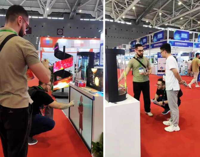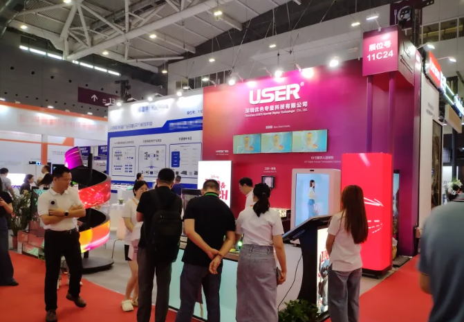 深圳优色专显科技有限公司此次展出:LED互动式楼梯屏、LED折叠广告机、双面高亮橱窗机、LED全息透明屏、全息数字人圆柱屏、数字人透明柜、LED柔性四面裸眼3D屏、LED演讲桌,数字人交互全息圆柱屏、透明展示柜、菜牌屏、工控一体机,IP67户外广告机等,政务、交通、教育、医疗、安防、文旅、商业展示、展厅智能中控等关联行业的显示产品解决方案。