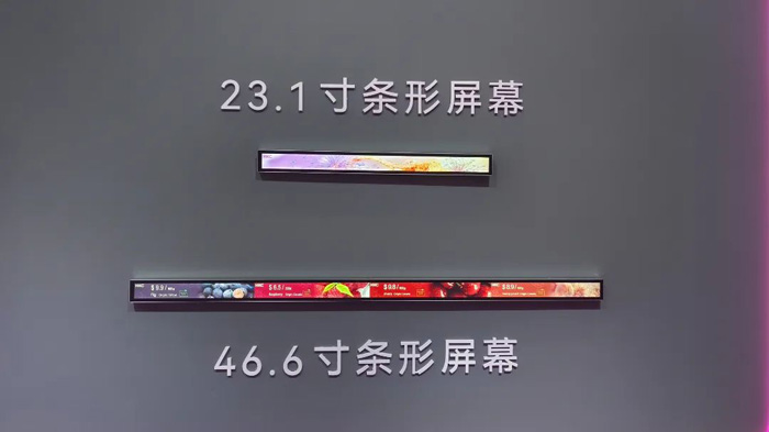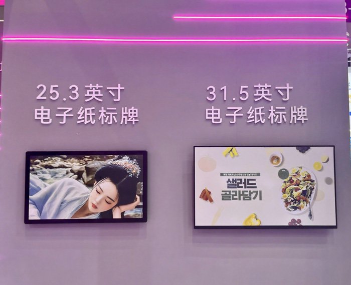HKC惠科同时展示了创新显示生态产品,包括23.1、46.6英寸条形屏,以及25.3英寸、31.5英寸电子纸标牌。其中电子纸标牌产品采用E6全彩电子纸技术,超薄超窄边设计配合锂电池供电,实现免布线安装,为智慧零售、办公等场景提供绿色高效的显示解决方案。